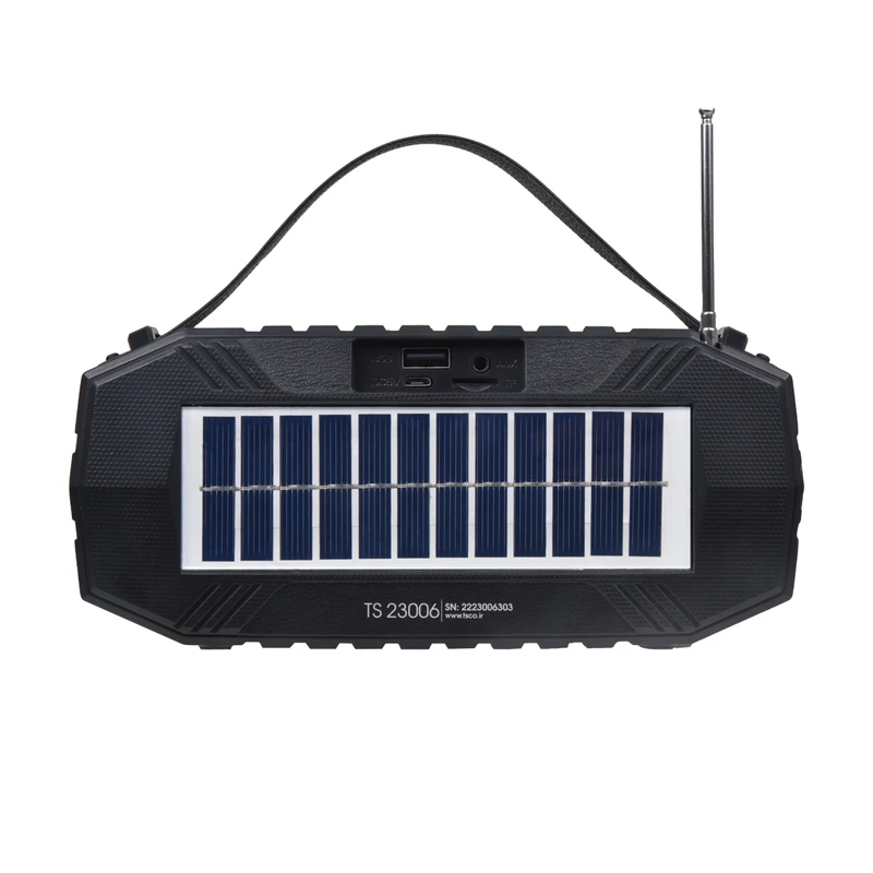 اسپیکر مدل TS 23006 از جمله اسپیکرهای OUTDOOR برند تسکو به شمار میرود که شما میتوانید آن را در موقعیت های مختلف همراه خود داشته باشید و از گوش دادن به موسیقی لذت ببرید. این اسپیکر پرتابل در ابعاد 90x67x200 میلی متر و وزن 0.475 کیلوگرم در رنگ مشکی طراحی و تولید شده، همچنین از یک بند برای حمل و جابجایی راحت این اسپیکر استفاده شده است. شما میتوانید از طریق بلوتوث ورژن 5_TF CARD_U DISK_AUX به دستگاه متصل شوید و به راحتی اقدام به پخش موسقی کنید و یا از گوش سپردن به رادیو لذت ببرید زیرا این دستگاه RADIO FM را نیز پشتیبانی میکند، از طرفی به دلیل میکروفون داخلی تعبیه شده در محصول قادر هستید به کمک این اسپیکر کاربردی تماس های ورودی خود را پاسخ دهید. اسپیکر پرتابل تسکو مدل TS 23006 مجهز به فناوری TWS نیز میباشد که از جمله مزیت های این اسپیکر به شمار میرود. این محصول بهره مند از یک باطری 1200 میلی آمپری است که در مدت زمان 2 الی 3 ساعت بطور کامل شارژ می شود، دارای وضوح صدای 80DB و توان واقعی 5 وات میباشد. از اقلام همراه اسپیکر مدل TS 23006 هم یک کابل دیتای USB میباشد.